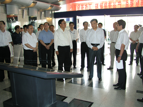 所領導在綜合科研摟大廳迎候中央領導和省委、省政府領導。邱家穩(wěn)所長代表全所對劉云山同志的來臨表示熱烈歡迎,并向各位首長簡短介紹了我所的情況。 邱所長、張書記和各位所領導陪同劉云山同志一行深入研究室參觀,首先參觀了原子頻標、潤滑中心、特種推進實驗室。隨后乘車去南昌路大院,參觀了制造中心、電源中心、空間環(huán)境控制儀表等實驗室。 劉云山同志一行在1個多小時的參觀中,一直饒有興味,不時的詢問我所有關課題的研制情況。